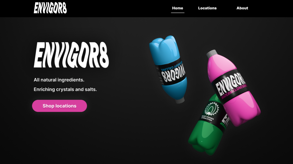 Like the other project, I went beyond assignment directions to use 3D tools to create high-quality renders of my design. The guidelines for this assignment were to create an energy drink brand and design two advertisements for your brand. In addition, we were directed to create a small website mockup for the energy drink company.